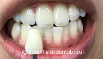 In-practice whitening takes place here in Southfields Dental Centre. Your dentist will protect your lips, gums and tongue before applying whitening gel to your teeth. A special light is then shone on to the gel to activate it, and all you need to do is sit back and relax while it gets to work. You may also be given some gel and trays so you can top up at home as necessary.